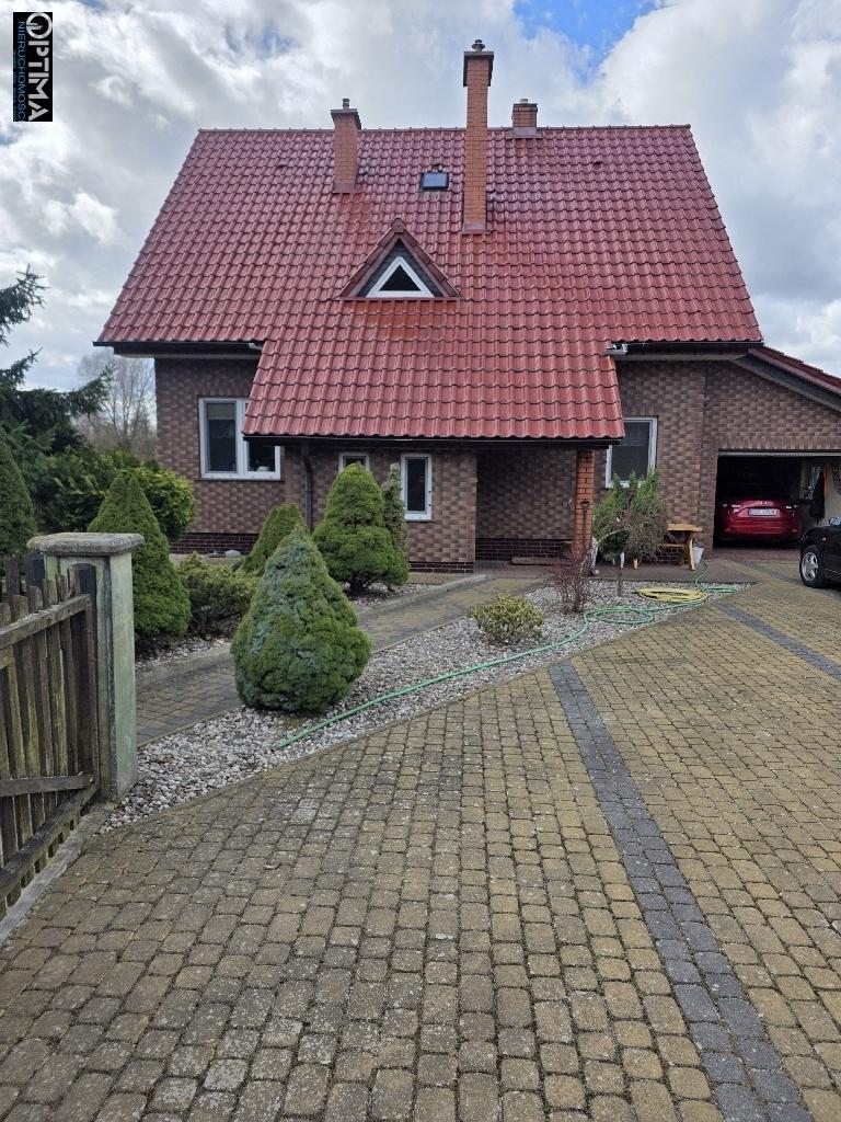 Nieruchomość o powierzchni użytkowej ok. 95 m² (powierzchnia całkowita 165,5 m²) usytuowana jest na pięknie zagospodarowanej działce o powierzchni ok. 1600 m². Już od pierwszego spojrzenia dom przyciąga uwagę swoją ponadczasową estetyką – elewacja z cegły klinkierowej w połączeniu z dachem pokrytym dachówką w kolorze ceglastym tworzy spójną, elegancką całość.